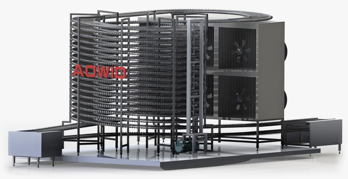 ● إنه أيضًا نوع من نظام تبريد الهواء المتقدم والفعال ، والذي يستخدم على نطاق واسع في العديد من الصناعات ، وخاصة في مجال معالجة الأغذية. إنه يبرد المنتجات (مثل منتجات المخابز من الفرن أو البطاطا المقلية من آلة القلي) حسب الهواء في درجة حرارة الغرفة (في بعض الأحيان تعتمد المعجبين المتداولين).